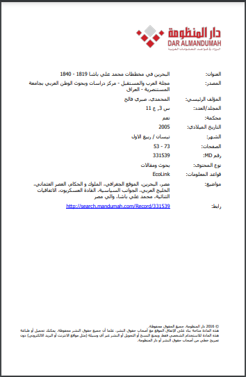 البحرين في مخططات محمد علي باشا 1819 1840 3